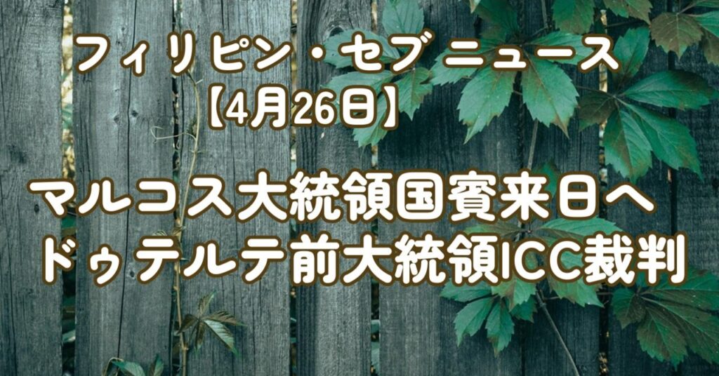 マルコス大統領国賓来日、エアアジア成田マニラ便運休、ドゥテルテ前大統領 ICC 裁判【フィリピン・ビサヤ・セブ ニュース 2026.4.26】